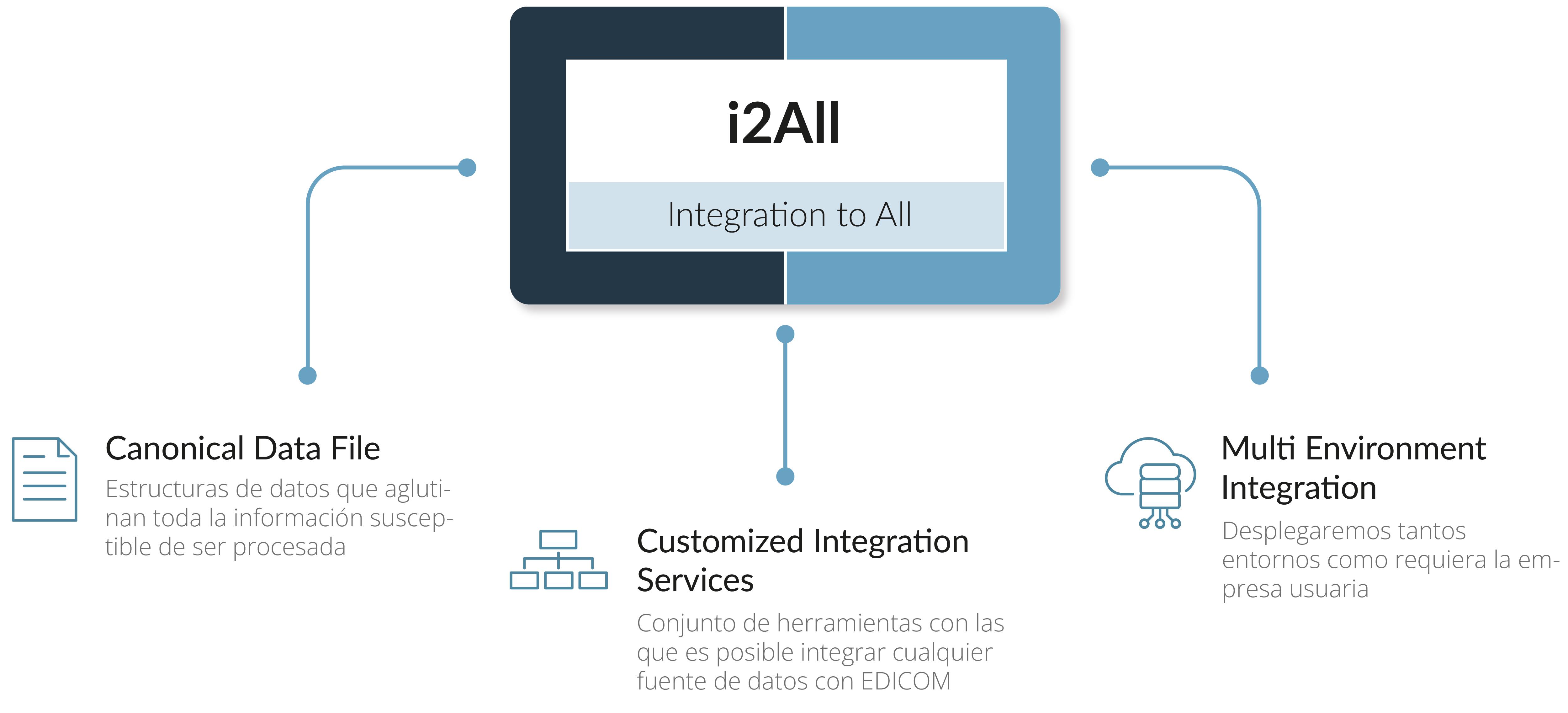 La Plataforma EDICOM permite la integración de todo su ecosistema de aplicaciones partiendo de interfaces de “canónicas”. Esto es, estructuras de datos globales que aglutinan toda la información susceptible de ser procesada por nuestra plataforma.